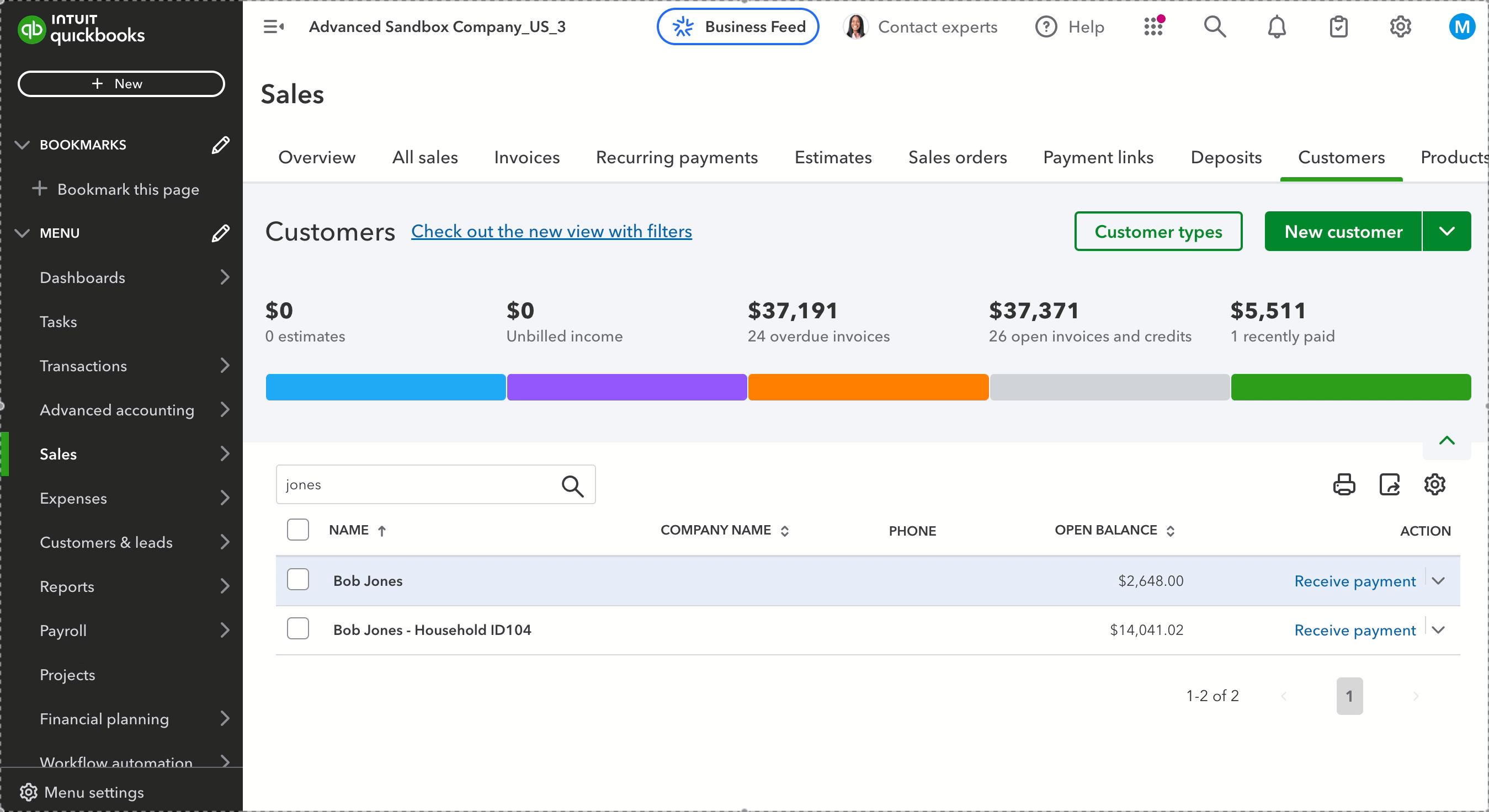 - Now all the transactions will be inside of the new Quickbooks customer account.