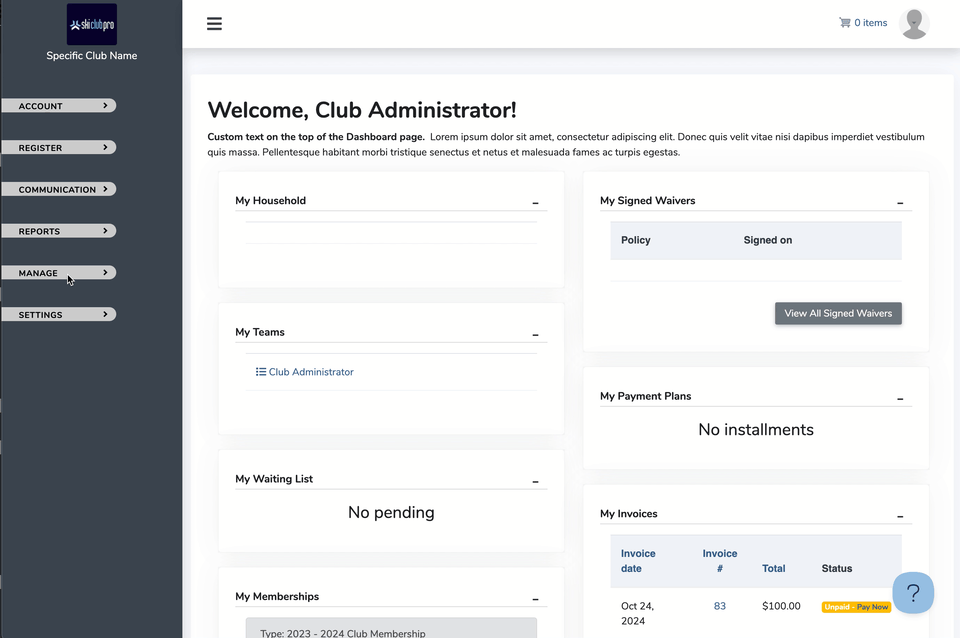 - For Category integrations, you need to select the category "Ski Club Pro".