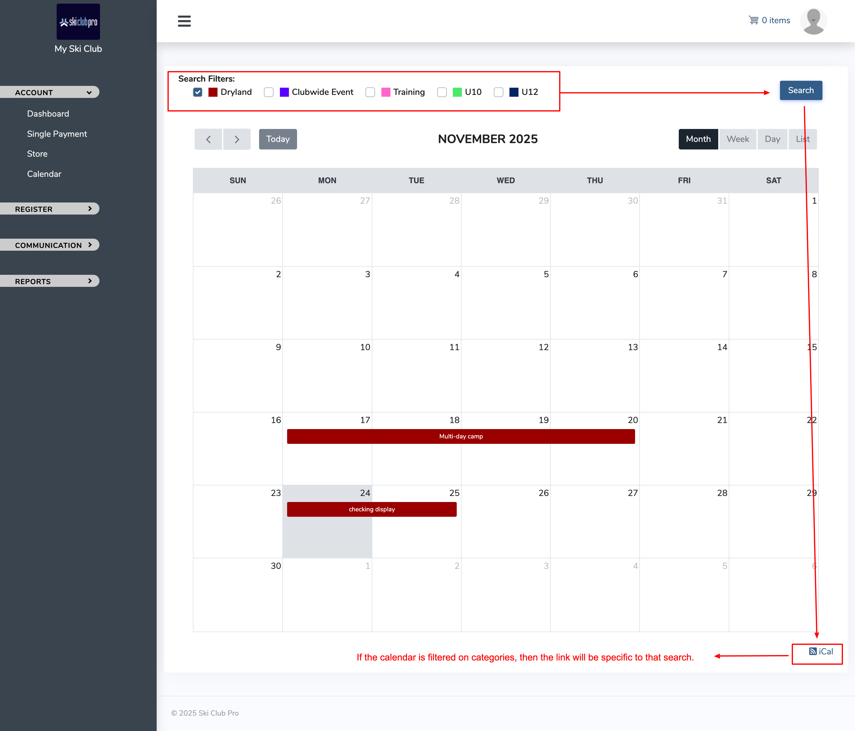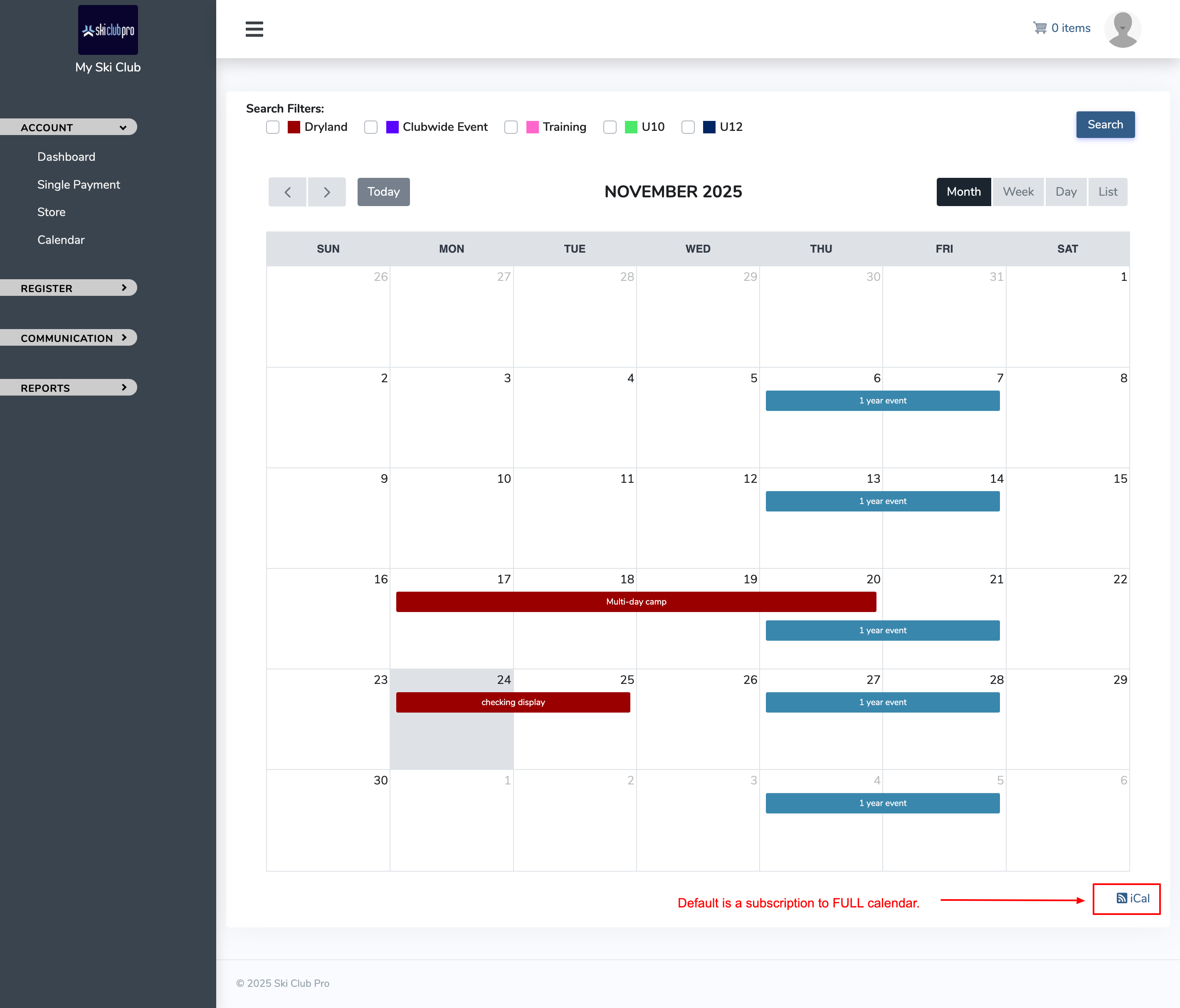 Overview: The calendar is a powerful tool to keep everyone informed about activities and schedules. But, users are not always within the system to access the calendar and it's nice to subscribe to either the whole club calendar or just the categories that are relevant to them. Below is a tutorial to show you how to subscribe to the calendar and specific categories.