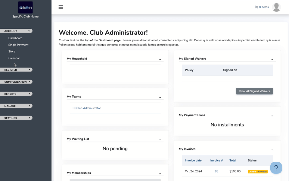 - Go to MANAGE > REVENUE > PAYMENT PLANS or ORDERS tabs